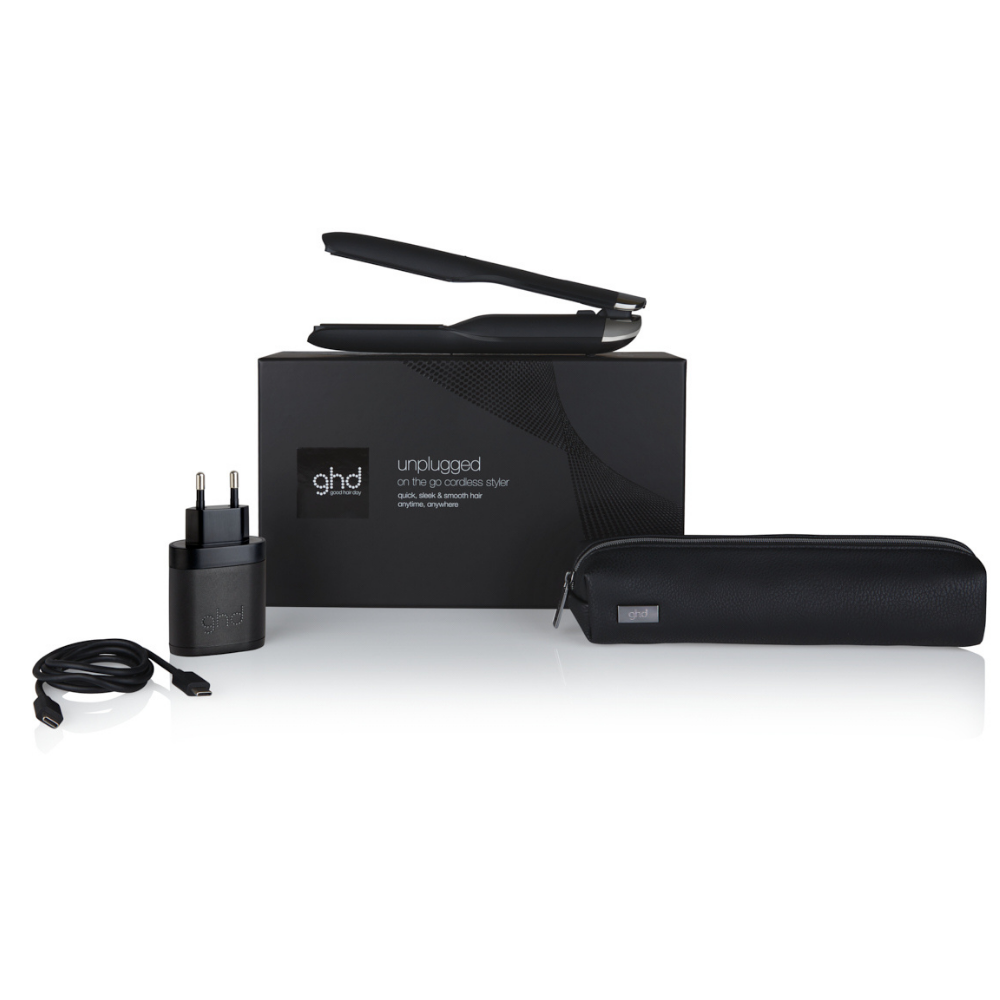 Lichtgewicht, draagbaar en krachtig, ghd unplugged geeft je de prestaties van een full-size ghd styler®. Hij is in slechts twee uur opgeladen via een USB-C-poort in uw auto, uw laptop of via het stopcontact met de adapter. Ghd unplugged biedt tot 20 minuten ononderbroken styling* en is voorzien van Hybrid Co-lithium technologie, die ervoor zorgt dat de optimale styling temperatuur van 185°C perfect wordt geregeld voor een sublieme stijl en zichtbaar gezonder haar zonder extreme hitte. De gebruiksduur van de batterij is geoptimaliseerd om consistente, krachtige prestaties te leveren terwijl u mobiel blijft, zodat u onderweg snel en efficiënt perfecte resultaten kunt behalen. Voor optimaal gebruik en om de levensduur van de batterij te behouden, dient u het toestel tussen de stylingsessies door op te laden. De glanzende keramische coating op de platen zorgt voor gemakkelijk glijden, geen pluizen en 65% meer glans**. De kracht en het compacte ontwerp van ghd unplugged maken van deze styling tool de nieuwe held in je handtas voor stress-vrije touch-ups. Ideaal voor alle haartypes.Hoe werkt het?De co-lithium hybride technologie is een unieke combinatie van twee aangepaste Dual-Zone™ verwarmingssensoren en lithiumbatterijen, die topprestaties garanderen met de optimale en constante temperatuur van 185°C. Deze temperatuur is speciaal bestudeerd om alle haartypes duurzaam te stylen, met het grootste respect voor de haarvezel.In deze doos: de ghd unpluggled styler®, zijn USB-C lader en zijn compacte, hittebestendige etui om je styler® te beschermen als je onderweg bent.Tips:Voor sneller en efficiënter opladen gebruikt u altijd de ghd meegeleverde oplader en USB-C kabel. Houd de levensduur van uw batterij in de gaten met de batterij-indicator, elk lampje staat voor 20% van de lading. Bij het opwarmen verbruikt ghd zonder stekker energie. De runtime kan dus variëren tussen stylingsessies. Doorlopende styling maximaliseert de runtime.*De exacte looptijd hangt af van uw haar en stylinggewoonten.**Technische test op natuurlijk gedroogd haar.Kenmerken :