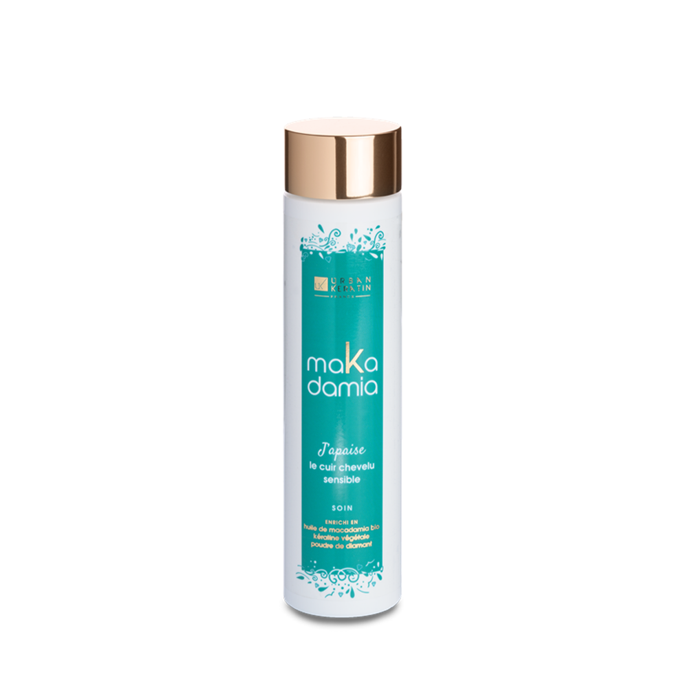 Enrichi en Huile de Noix de Macadamia, poudre de Diamant et kératine végétale.Soin apaisant et anti-irritant pour cuir chevelu sensible. Le cuir chevelu est apaisé, les cheveux sont faciles à démêler, plus souples, plus doux et plus brillants.