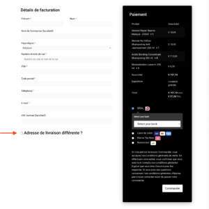 Cochez la case ” Adresse de livraison différente ? “