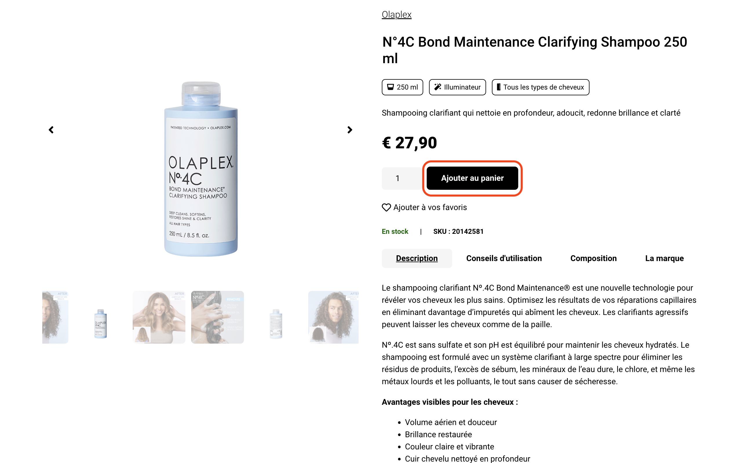 Plusieurs onglets sont disponibles afin de vous donner un maximum d’informations sur les produits qui vous intéressent, vous trouverez notamment : une description, des conseils d’utilisations, la composition ou encore un petit mot d’explication sur la marque du produit.