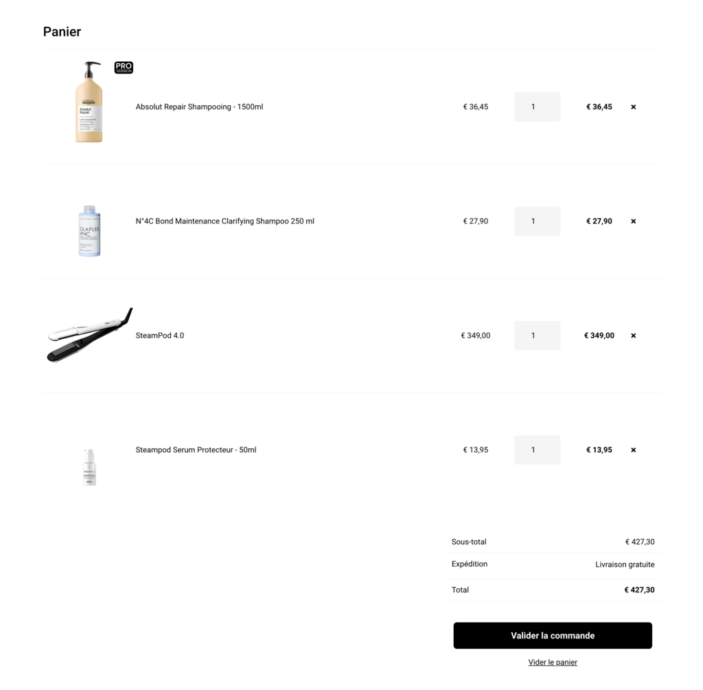 Après avoir vérifié l’ensemble de votre panier, vous pouvez terminer votre commande en cliquant sur le bouton ” Valider la commande “.