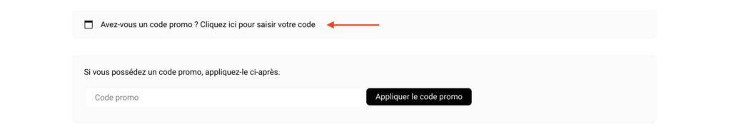Pour valider le code et appliquer la réduction cliquez sur ” Appliquer le code promo “.