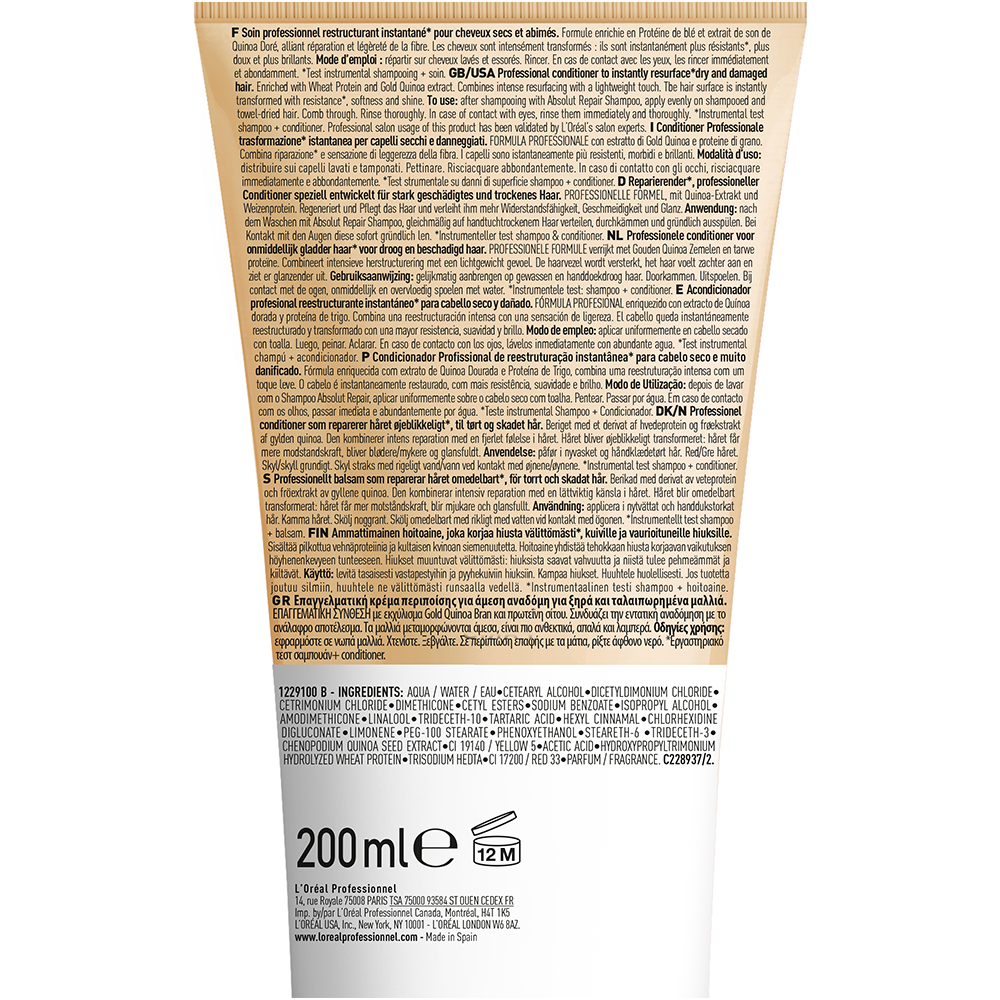 Aqua / Water / Eau - Cetearyl Alcohol - Dicetyldimonium Chloride - Cetrimonium Chloride - Dimethicone - Cetyl Esters - Sodium Benzoate - Isopropyl Alcohol - Amodimethicone - Linalool - Trideceth-10 - Tartaric Acid - Hexyl Cinnamal - Chlorhexidine Digluconate - Limonene - Peg-100 Stearate - Phenoxyethanol - Steareth-6 - Trideceth-3 - Chenopodium Quinoa Seed Extract - Ci 19140 / Yellow 5 - Acetic Acid - Hydroxypropyltrimonium Hydrolyzed Wheat Protein - Trisodium Hedta - Ci 17200 / Red 33 - Parfum / Fragrance
