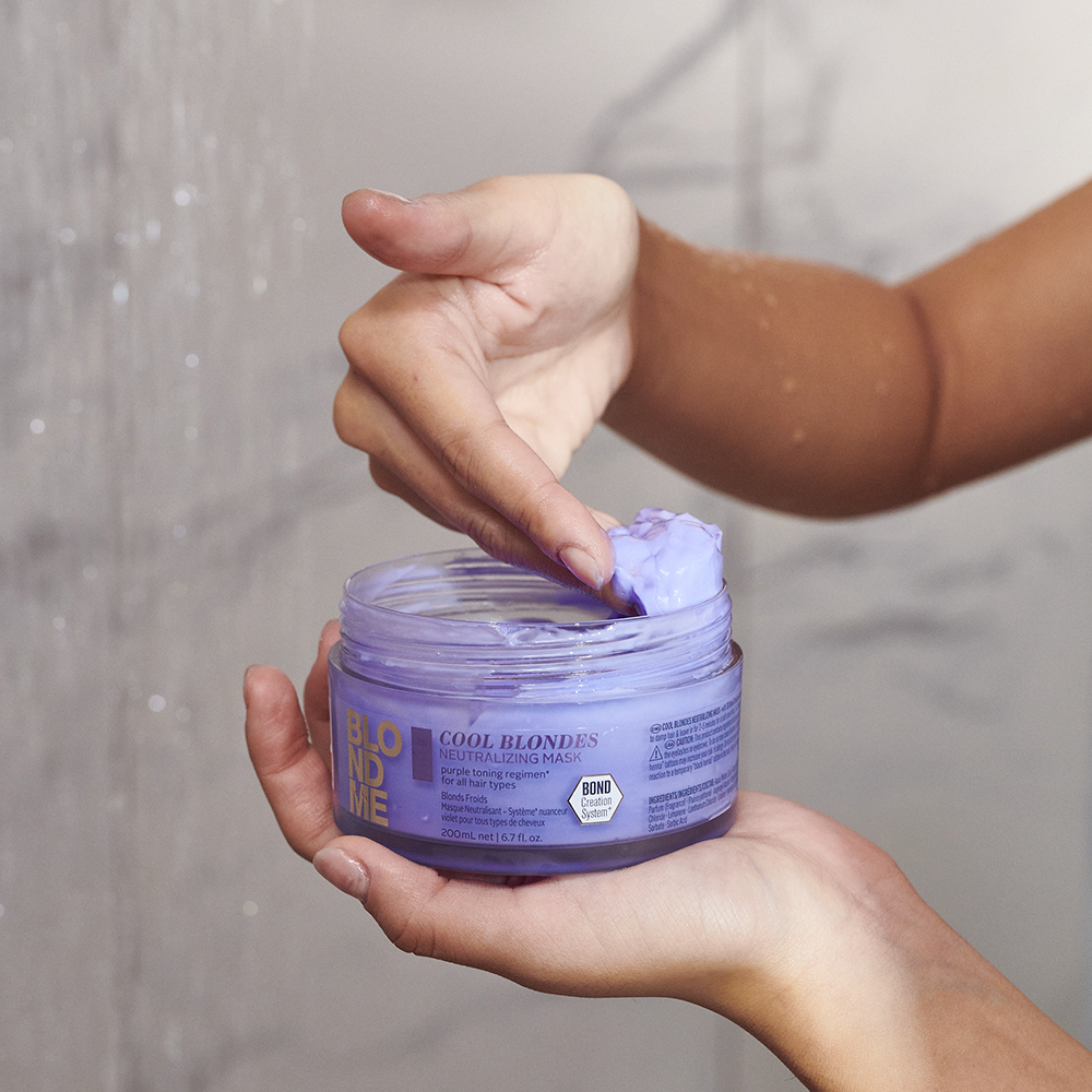 BlondMe Masker Cool Blondes Neutral 200mlHet BLONDME Cool Blondes Neutral Masker, met 3D Bond Creation Technology en Velvet Flower Protein Complex, helpt bij het opbouwen van nieuwe bindingen, verwijdert koperachtige tonen en neutraliseert gele ondertonen in blond haar.
