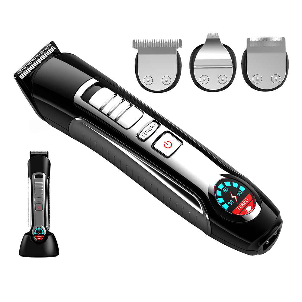 Deze tondeuse kan met of zonder snoer worden gebruikt en heeft een accuduur van 60 minuten. Met zijn extra stille ontwerp, 3 verschillende en zeer sterke messen, precisie en 4 snijsets krijgt u een perfect kapsel. De turbofunctie verhoogt de snelheid met 20% en een LCD-display is inbegrepen.