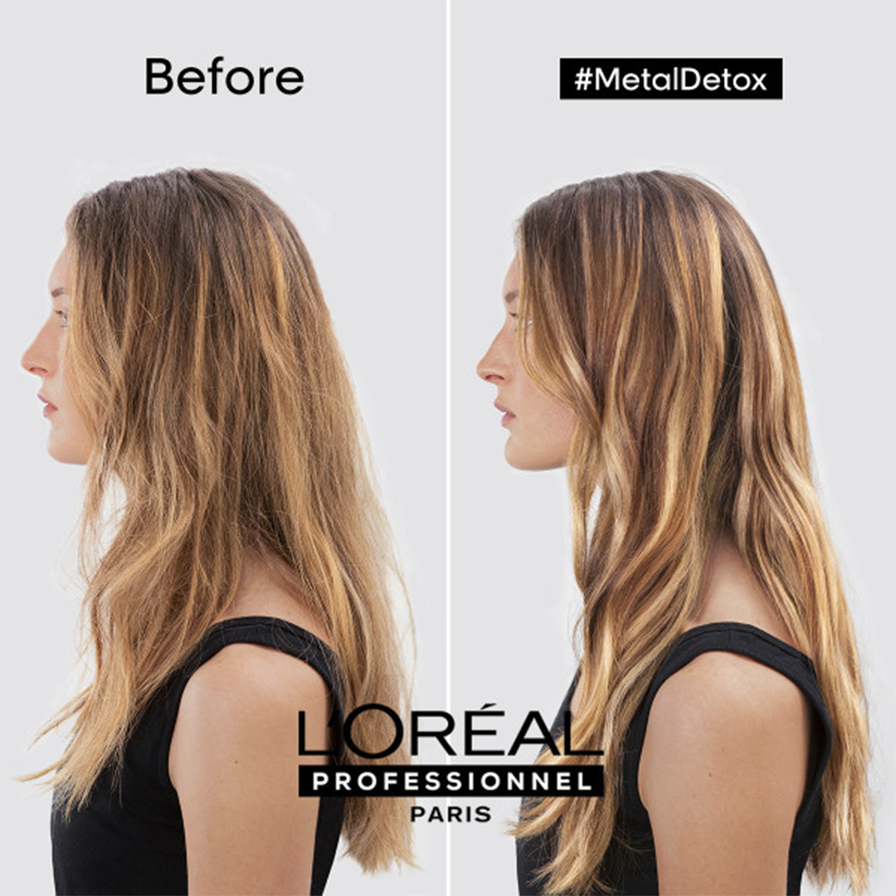 Elke keer dat je je haar wast, dringen er metaaldeeltjes in de haarvezels. Het metaal in het water verhoogt het risico op haarbreuk en kleurverandering na een kleuring. Daarom lanceert L’Oréal Professionnel nu haar nieuwste innovatie: Geconcentreerde Metaalontgiftingsolie. Met deze toevoeging aan de Metal Detox familie is de formule van het gamma nog sterker en levert revolutionaire resultaten: