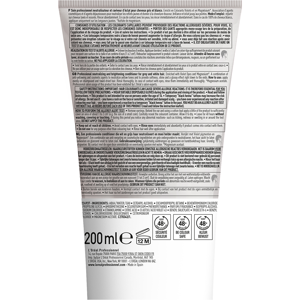 De Silver conditioner is verrijkt met Ceramide en Babassu olie waardoor het de perfecteluchtige behandeling is om het haar zacht en glanzend te maken. Door de paarse en blauwe pigmenten, worden gele weerschijnen geneutraliseerd en wit en grijs haar stralend.