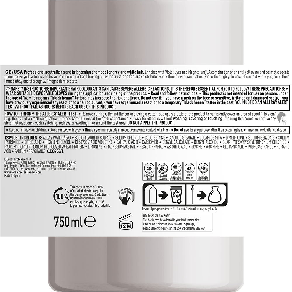 Glans van witte haren.Ontgelend bestanddeel om de gele effecten te neutraliseren. Aminozuren voor het neutraliseren van gele weerschijnen van de keratine + kationisch bestanddeel voor soepel haar.