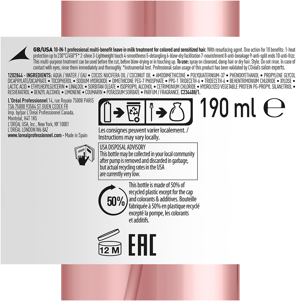 Perfectionerende multipurpose spray voor alle gekleurde haartypes. Een universeel gebaar van professionals om gekleurd haar subliem te maken. 10 onmiddellijke voordelen in dienst van een beter kleurresultaat: