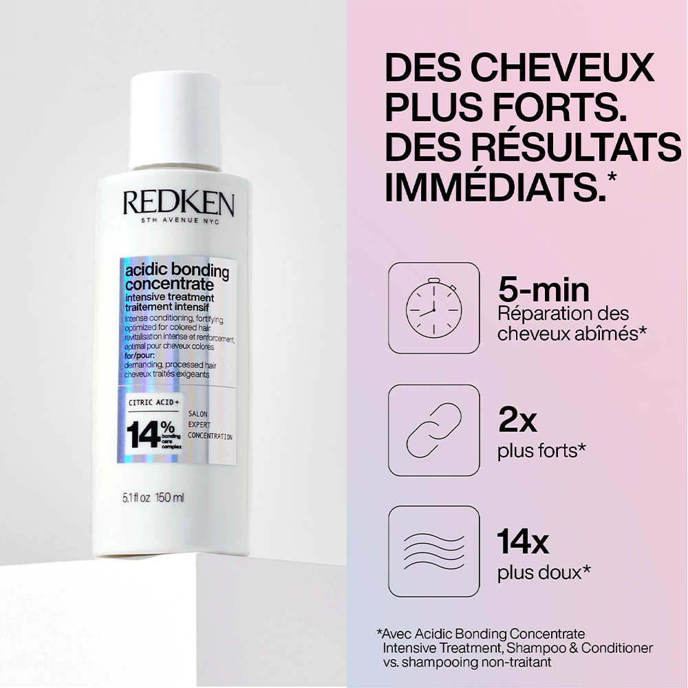Acidic Bonding Concentrate Intensive Treatment est un masque prétraitement acide à rincer pour tous les types et textures de cheveux, même les plus abîmés et traités chimiquement. Il permettra de redonner de la force aux cheveux endommagés et leur donner un aspect et touché sain. Ce masque de prétraitement est formulé avec une concentration maximale en Bonding Care Complex pour une transformation visible des cheveux en seulement 5 à 10 minutes.