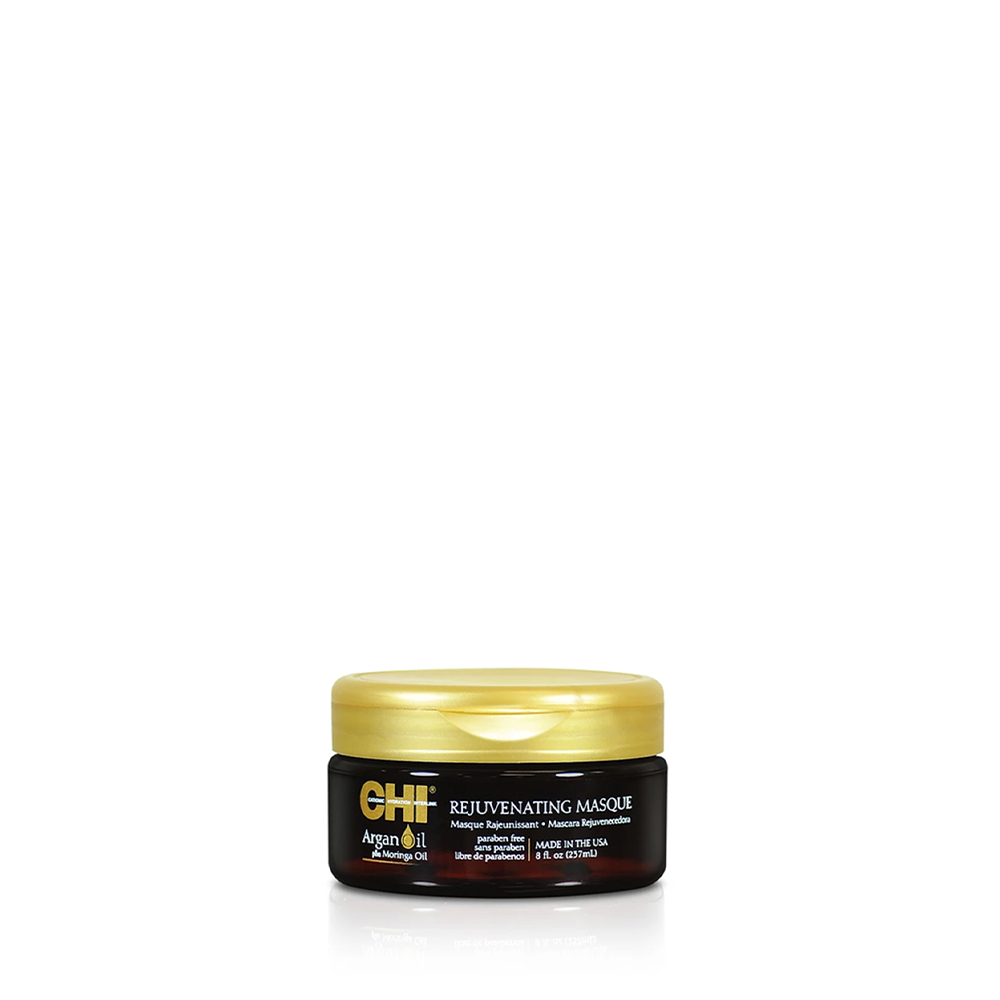 Masque de Rajeunissant à Huile d’Argan 237ml de CHI– CHI Argan Oil Mask est un masque intensément nourrissant pour les cheveux abîmés, sans vie – La formule puissanteà l’huile et à la soie hydrate et revitalise les cheveux et peut considérablement améliorer la texture, l’élasticité, la brillance et la contrôlabilité des cheveux – Un masque nourrissant et hydratant intense pour un résultat lisse & brillant Pour qui ?Cheveux abîmés et sans vie Particulièrement efficace dans les cheveux épais,grossiers et chimiquement traités