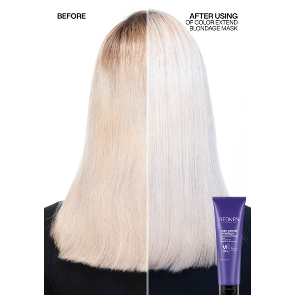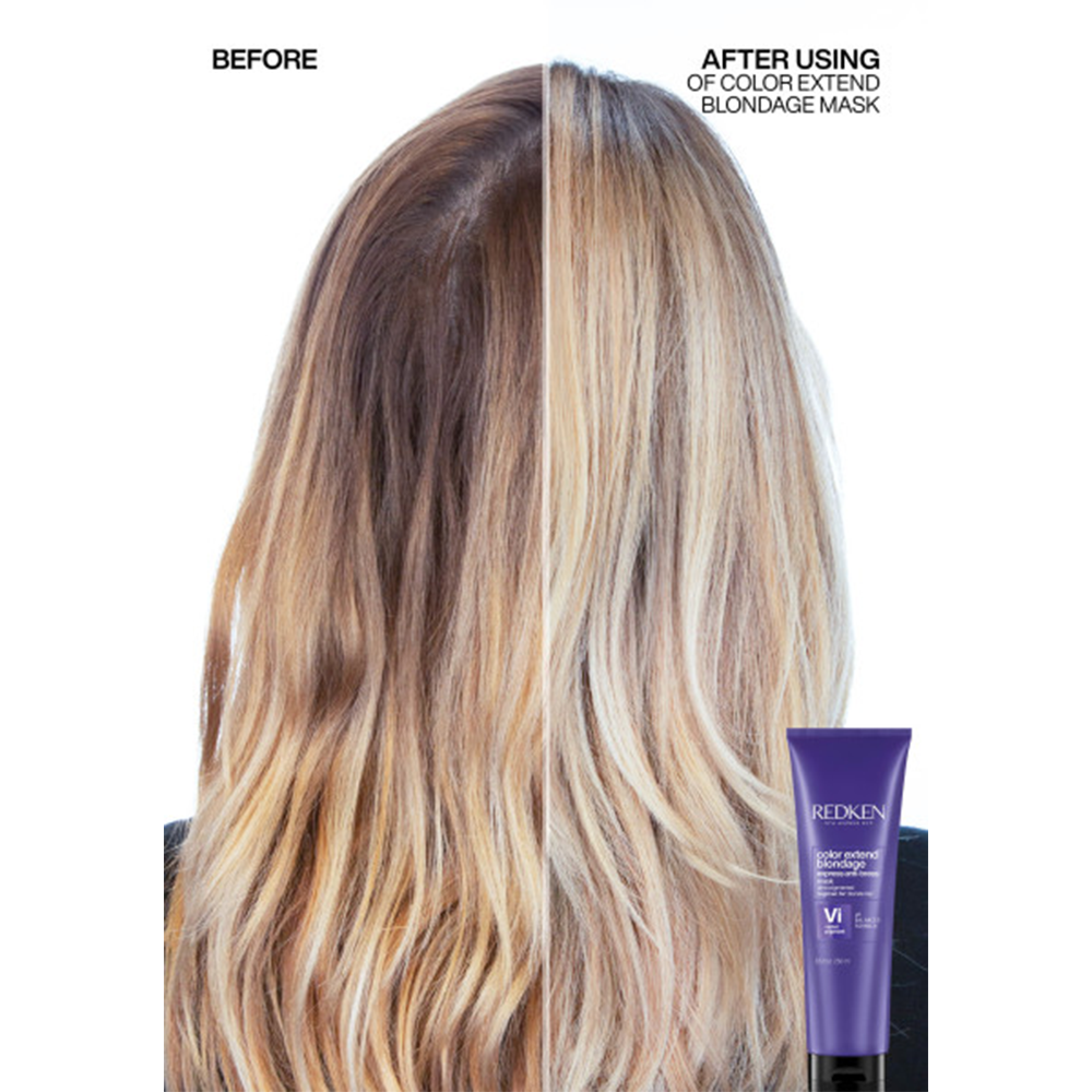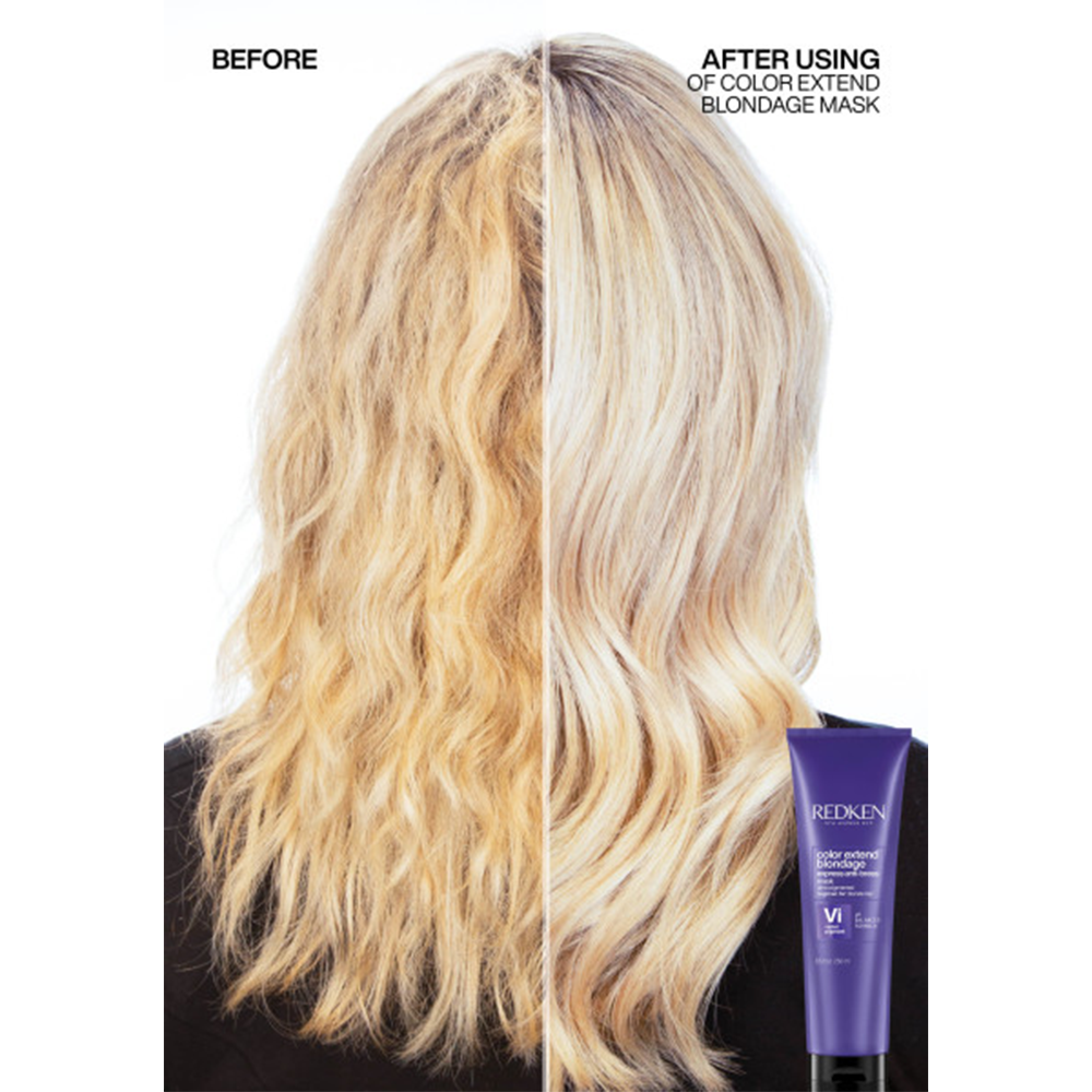 Découvrez toute l’efficacité de Redken ! Grâce à une approche unique basée sur la science, nos produits sont élaborés pour apporter hydratation et protéines en respectant le pH du cheveu. Testés dermatologiquement et recommandés par les professionnels de la coiffure. Le masque Blondage neutralise les reflets jaunes et préserve l’éclat des cheveux blonds.Technologie/ingrédients clés : KeraBond : Injection de protéines pour renforcer le cheveu. Acide lactique + Extrait de feuille de violette : Action soin au cœur des cheveux. Pigments sur-mesure.