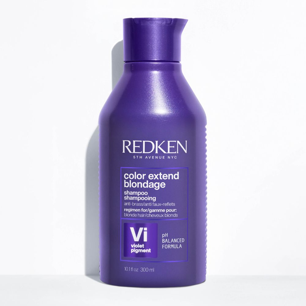 Découvrez toute l’efficacité de Redken ! Grâce à une approche unique basée sur la science, nos produits sont élaborés pour apporter hydratation et protéines en respectant le pH du cheveu. Testés dermatologiquement et recommandés par les professionnels de la coiffure. Le shampooing Blondage nettoie en douceur, neutralise les reflets indésirables et préserve l’éclat des cheveux blonds grâce à des pigments violets*. Il répare également la fibre capillaire grâce à un complexe protéique triple-acides. Il convient aux cheveux blonds décolorés, méchés et naturels.*pigments sur-mesure : Nuançage préservé. Neutralise les faux reflets.