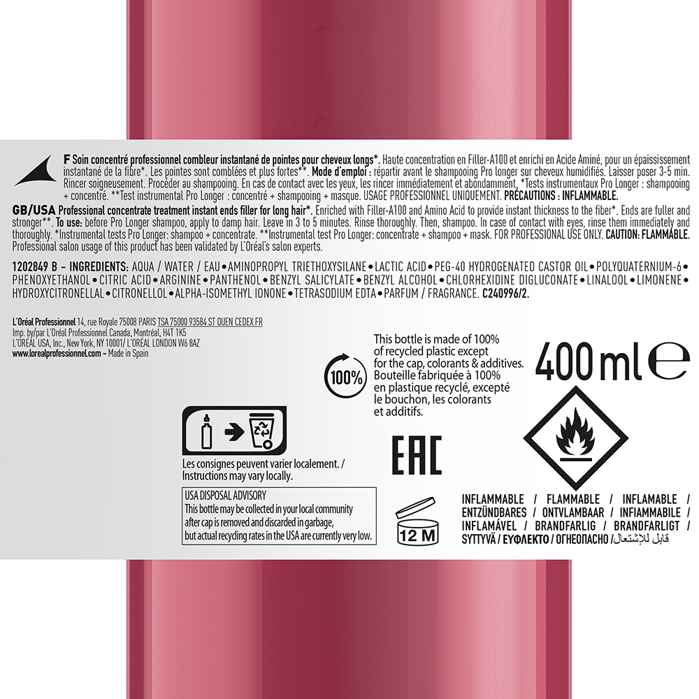 Concentré enrichi en Acides Aminés et Filler-A100. Il rénove les longueurs et comble les pointes pour des cheveux plus longs, plus épais et en meilleure santé.