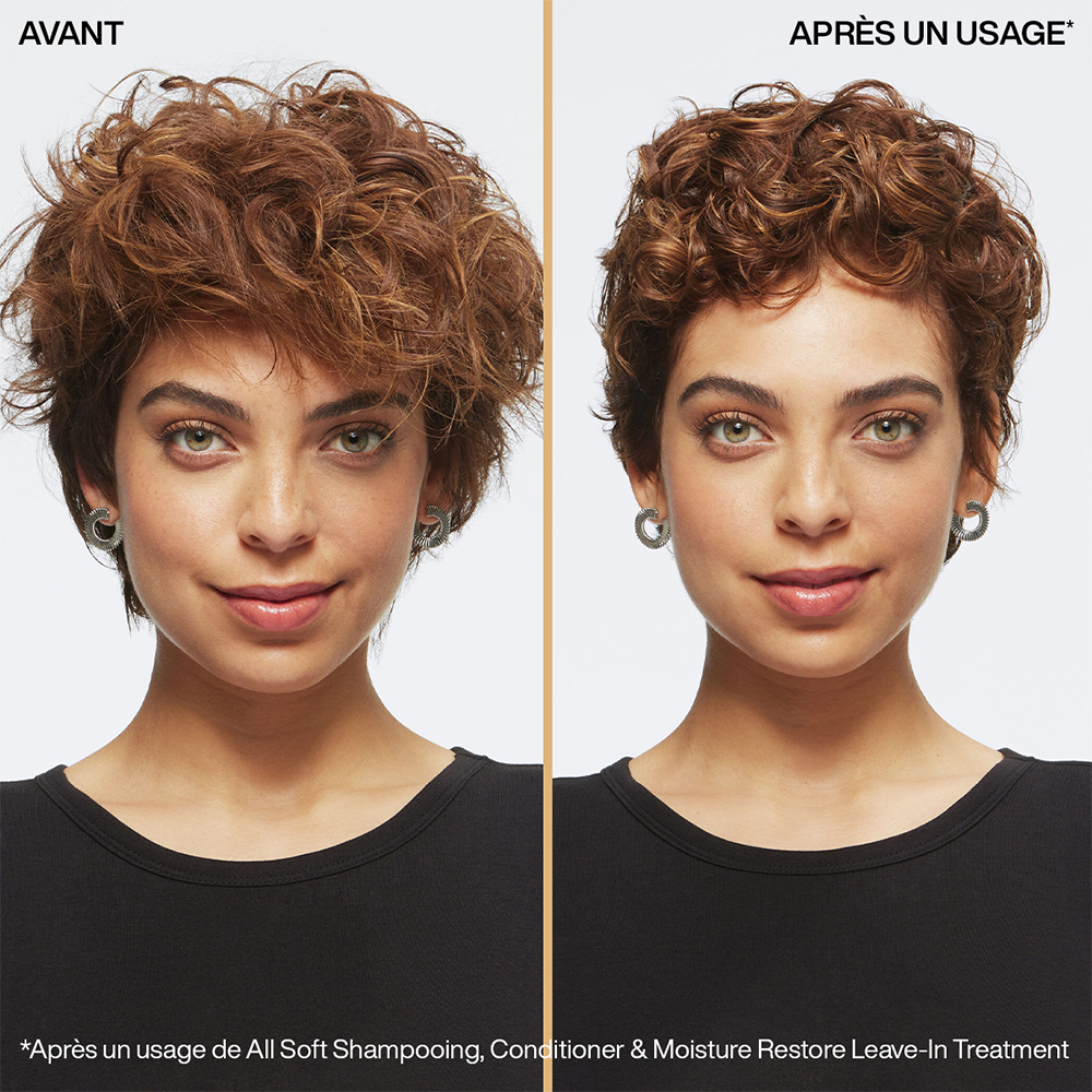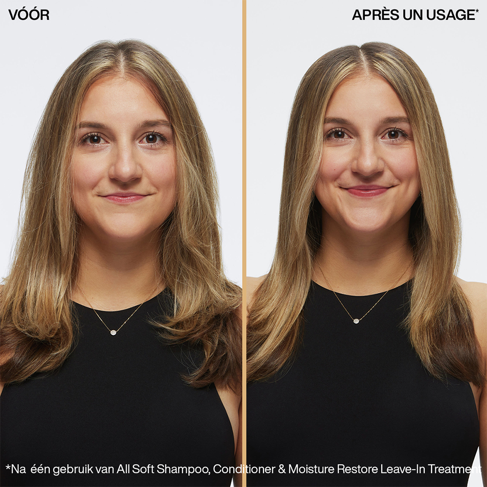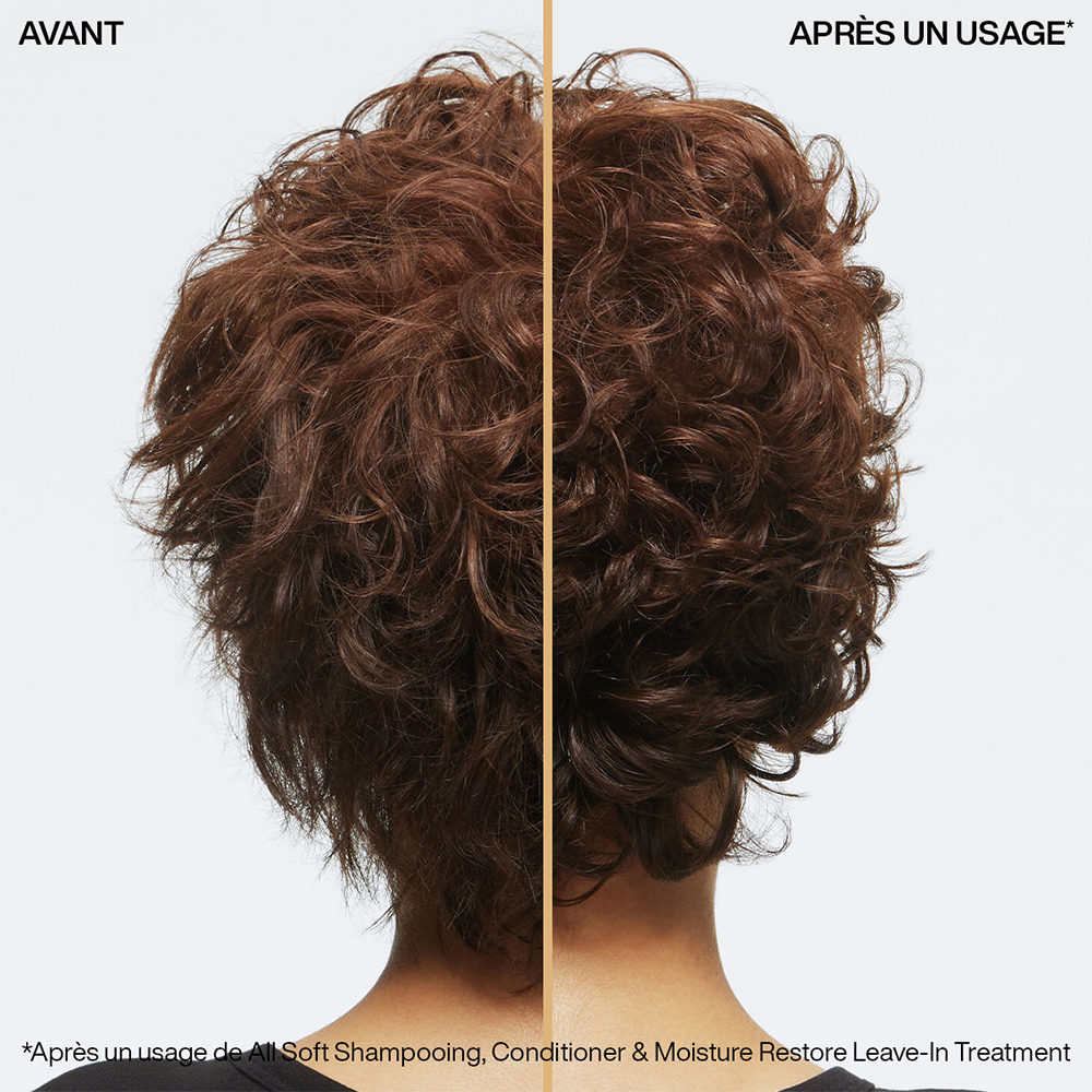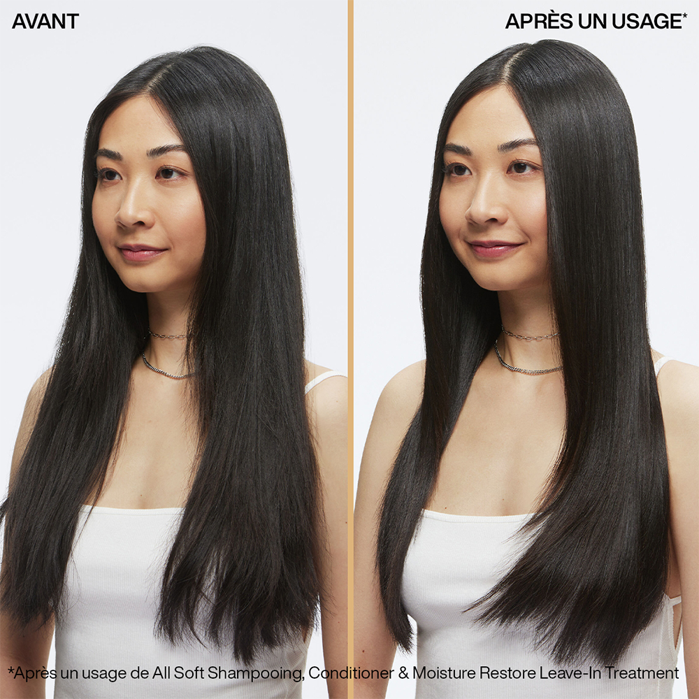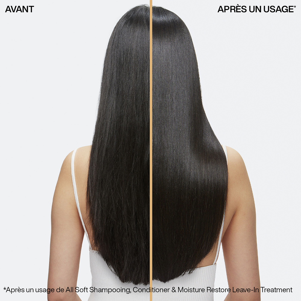 Le traitement sans rinçage All Soft Moisture Restore procure une brillance et une hydratation instantanées pour des cheveux d’apparence et de sensation saines. Ce traitement sans rinçage hydrate instantanément et tient toute la journée.