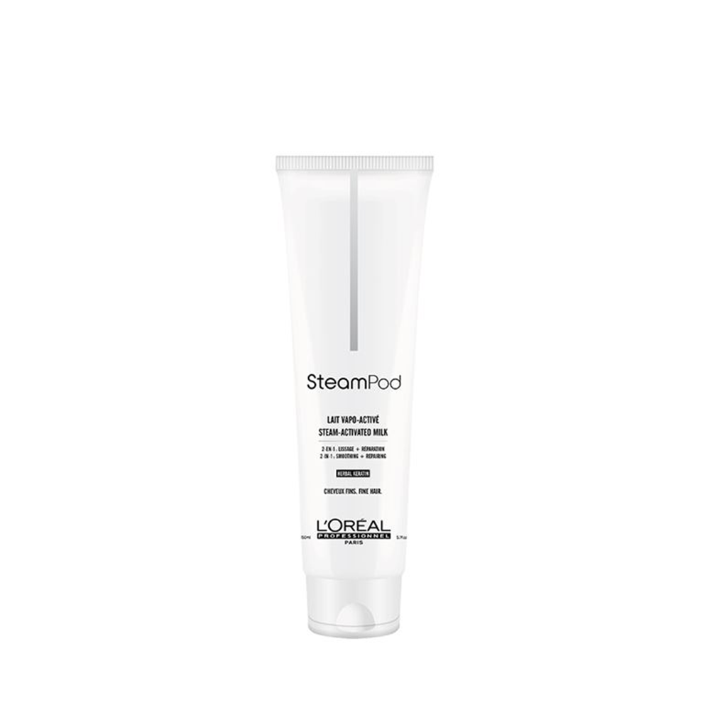 Découvrez le lait de soin vapo-activé de L’Oréal Professionnel, une formule protectrice de haute définition pour cheveux fins à appliquer avant d’utiliser le SteamPod 3.0.Le lait est aussi idéal pour faire des ondulations. Le lait a une action 2 en 1 : un effet lissant + un effet réparateur. La technologie à base de kératine végétale est activée et diffusée par la vapeur, tout en coiffant vos cheveux. Ce lait protège vos cheveux de la chaleur, il les rend doux et renforcés.